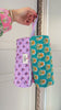 Handmade from 100% cotton and hand block printed by skilled artisans, it has soft cotton quilting for structure, a zip closure, and a single spacious compartment. The cylindrical shape makes it easy to store and access essentials, while the side wristlet allows for easy carrying or hanging.